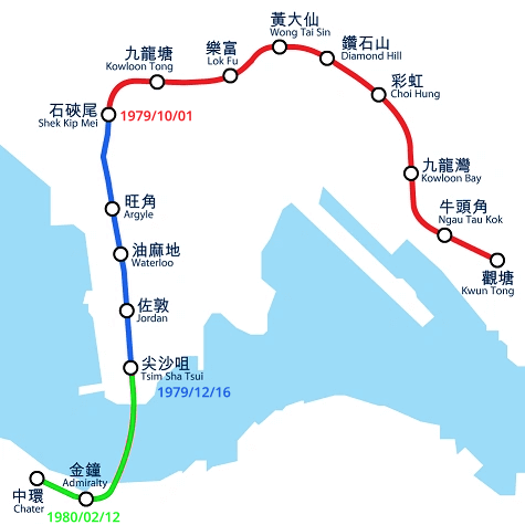 1979年10月1日,修正早期系統(觀塘 ↔ 石硤尾)正式通車 (即現時觀塘綫的一部分),標誌著地下鐵路正式開始營運。